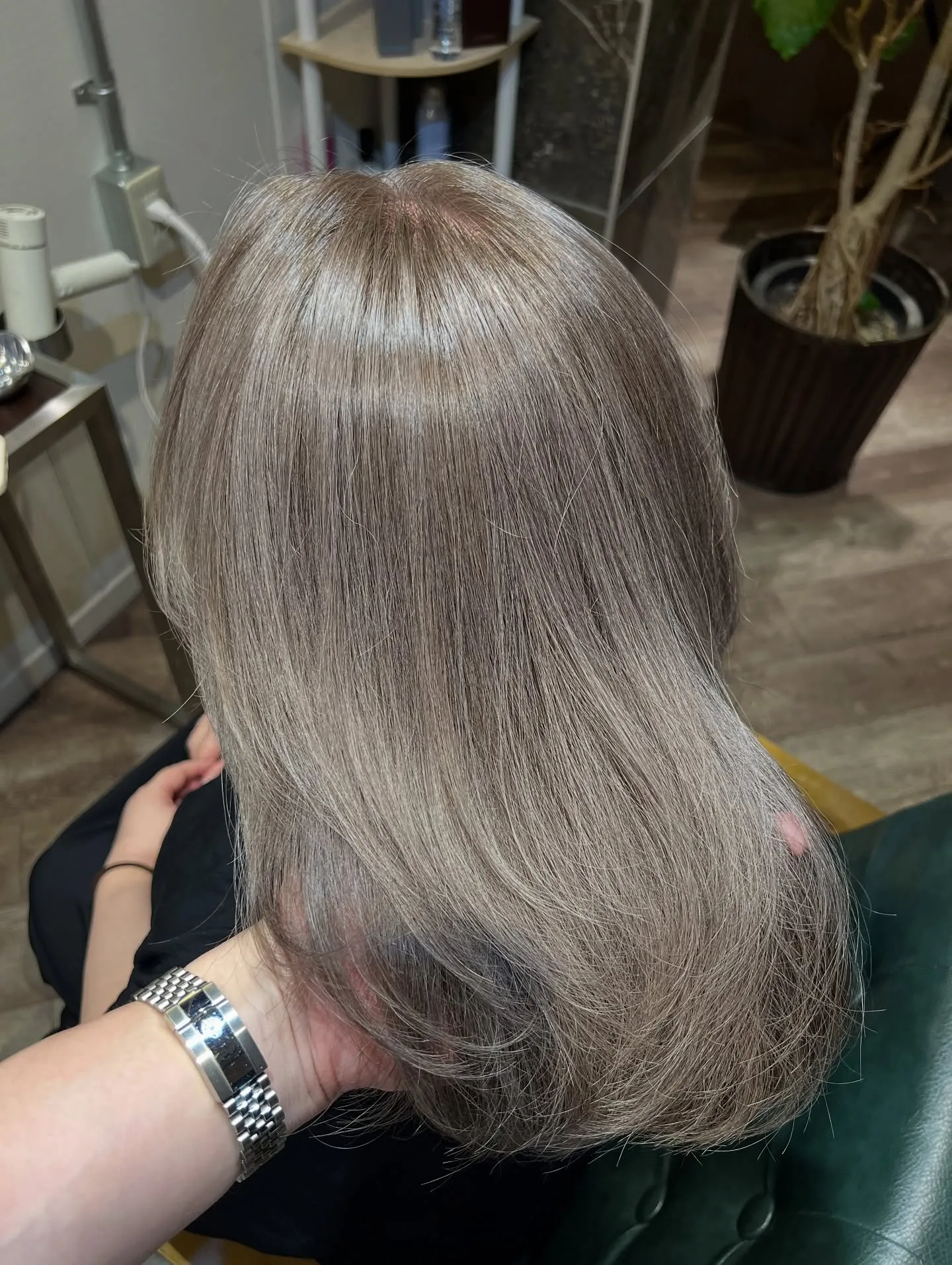 【脱白髪染めカラー】で明るさと透明感のある色味に仕上げたいというご希望でした。